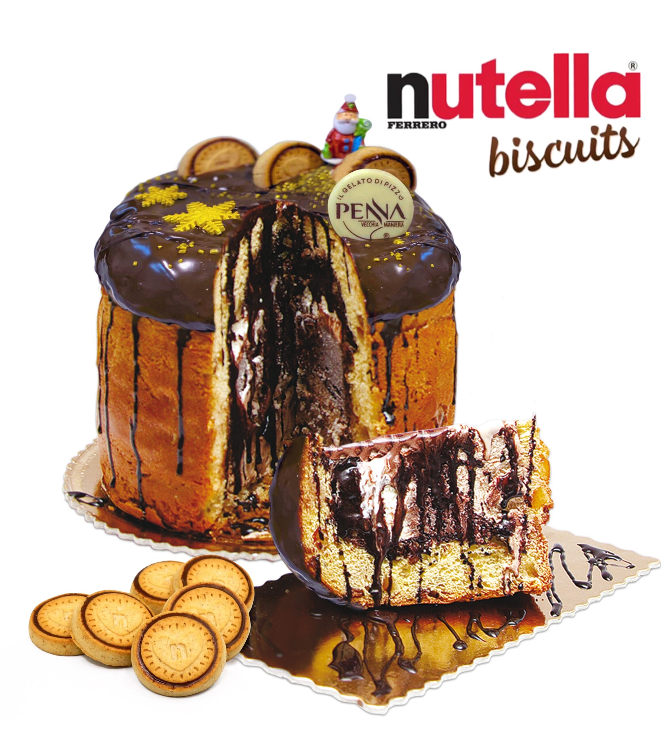 Dalla tradizione della città di Pizzo, nasce il Goloso Panettone Gelato Artigianale Nutella Biscuits™ soffice e a lievitazione Naturale, farcito con gelato Nutella, gelato Nocciola, fondente alla Nutella, Nutella Biscuits, delicata mousse alla Nutella.